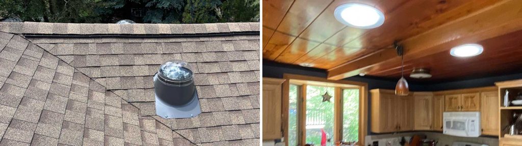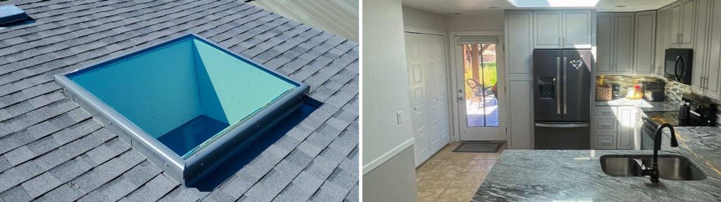 We will consider which roof slope will work best for your home. Also, we will evaluate the room you’re looking to brighten up. If it applies, we need to look in the attic. The distance from the ceiling to the roof is important.