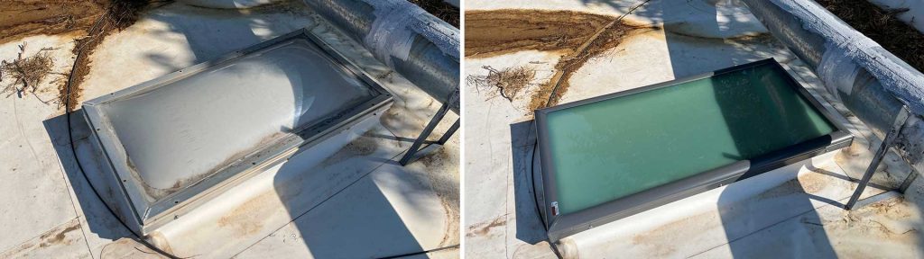 Leaks! — The most common problem solved with repairs. There are many reasons for leaks and a variety of solutions. Many skylight leaks can be repaired cost effectively and our proposal will reflect this.