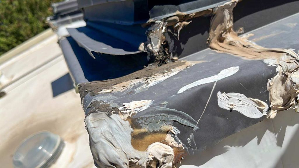 Attempts have been made to fix the leak with caulking.